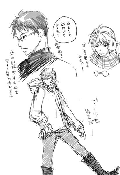 街で見かけた男子学生を欲望のままに描いたりしたらくがき。